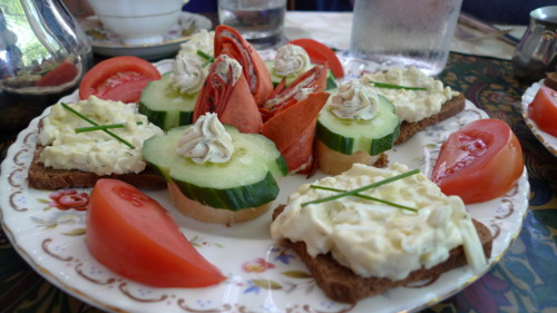 Out came the cucumber and egg salad finger sandwiches. Whenever I get cucumber sandwiches, I am always reminded of one of my favourite plays, Oscar Wilde’s “The Importance of Being Earnest” (they were to be specially prepared for Lady Bracknell). I still get a good laugh whenever I read that play 🙂