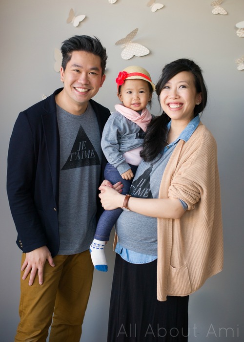 Last weekend we took a family photo since Brielle turned one month old! We wore these super comfy matching “Je T’Aime” shirts by a family run Canadian clothing company called “Whistle & Flute” based out of Victoria, BC. They have very modern, stylish, and kawaii designs that are unisex, which is very rare for children’s clothing! It’s also rare to find matching items for the whole family! We love our shirts, and I ordered one for Brie to grow into as well 🙂