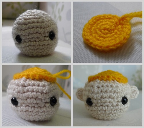 Then came a challenging part: the hair! I used double crochets to go down the back of his head.