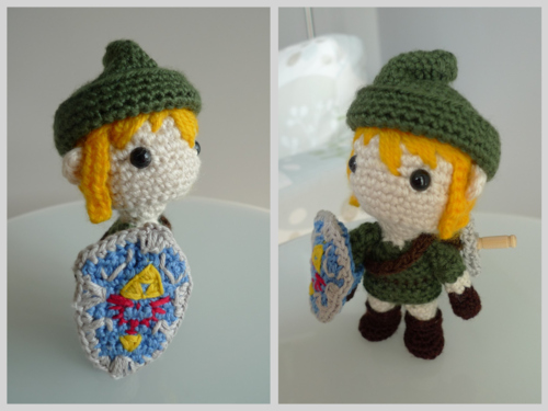 I am so happy with how Link turned out. Becchin’s pattern is very intricate, from his pivotable head to his removable boots. Link is incredibly sturdy as it amazes me how he can stand all by himself. If you are or know of any Legend of Zelda fans, you should definitely give this pattern a try. Once again, the pattern for the Hylian shield, sword and sheath can be found HERE. Let me know what you think of this Link and if you played “Ocarina of Time” back in the day too! What are some of your favourite video games?