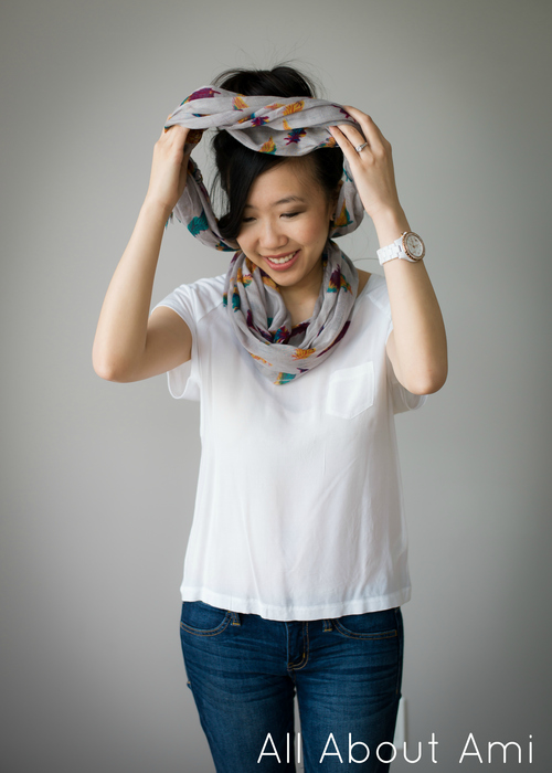 You can wear the CoverBoo doubled up like I am here, knotted, or as a long circle scarf. It’s neat because these scarves serve as a fashion accessory in addition to a nursing cover, and it’s very convenient whenever you want to nurse since you are already wearing your cover! They can be easily stored in your purse too since they are so lighweight.